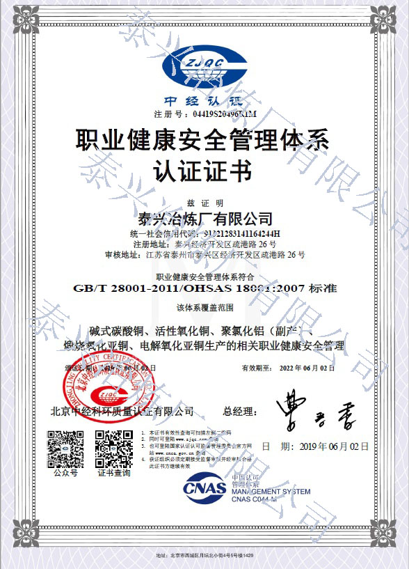 泰興冶煉廠(chǎng)有限公司(原泰興冶煉廠(chǎng)),始建于20世紀(jì)70年代初,現(xiàn)位于江蘇省泰興經(jīng)濟(jì)開(kāi)發(fā)區(qū)。歷經(jīng)40年的創(chuàng)新驅(qū)動(dòng)、穩(wěn)健發(fā)展,已成長(zhǎng)為一家專(zhuān)業(yè)生產(chǎn)堿式碳酸銅、高純電鍍氧化銅、氧化亞銅、氧化銅、無(wú)水硫酸銅、海綿銅粉及副產(chǎn)品聚氯化鋁(凈水劑)等系列無(wú)機(jī)鹽產(chǎn)品及處置不含氨的氯化銅蝕刻液(HW22)15000噸/年的“國(guó)家高新技術(shù)企業(yè)”和地方性骨干企業(yè)。公司總占地面積3.7萬(wàn)平方米,建筑面積4萬(wàn)平方米,注冊(cè)資本2088萬(wàn)元,固定資產(chǎn)1.2億元,年產(chǎn)值約7億元。