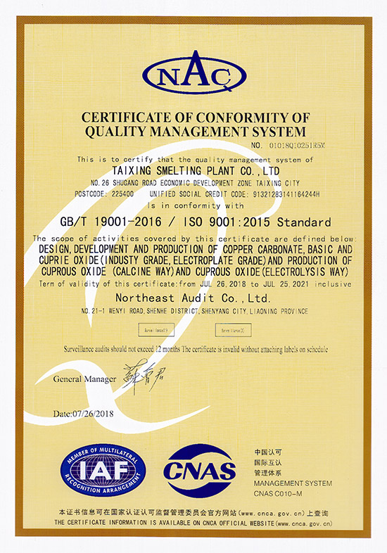 Drafting unit of "Industrial Cuprous Oxide", "Industrial Basic Copper Carbonate"...