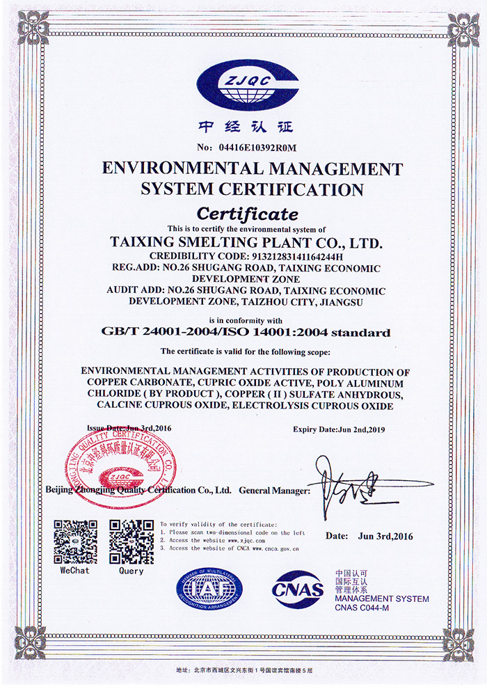 Copyright(C)2018, Taixing Smelting Plant Co., Ltd. All Rights Reserved. Supported by ChinaChemNet ChemNet Toocle Copyright Notice 備案序號(hào):蘇ICP備10006952號(hào)-2
