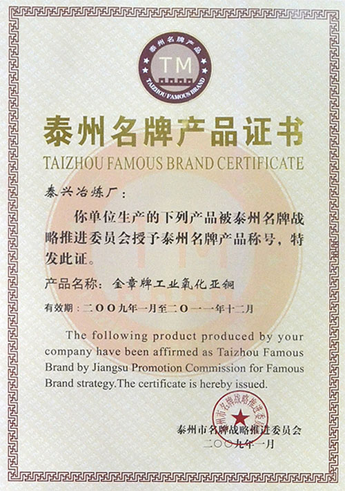 Copyright(C)2018, Taixing Smelting Plant Co., Ltd. All Rights Reserved. Supported by ChinaChemNet ChemNet Toocle Copyright Notice 備案序號:蘇ICP備10006952號-2